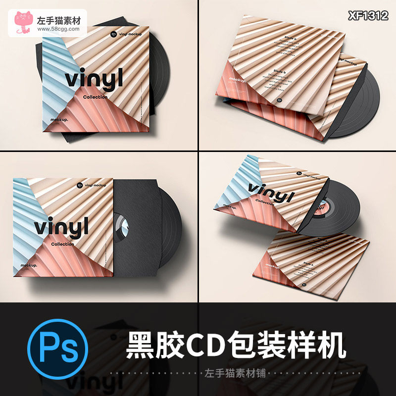 高端膠片黑膠CD包裝設(shè)計(jì)展示效果圖品牌VI樣機(jī)PSD智能貼圖素材