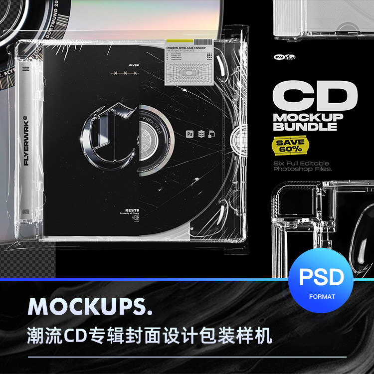 潮流酷炫音樂(lè)CD光盤(pán)唱片專(zhuān)輯封面貼圖包裝設(shè)計(jì)展示樣機(jī)ps素材合集