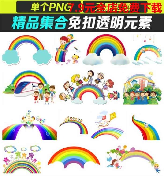 卡通手繪彩虹兒童插畫照片美化裝飾元素png免摳透明設(shè)計(jì)素材