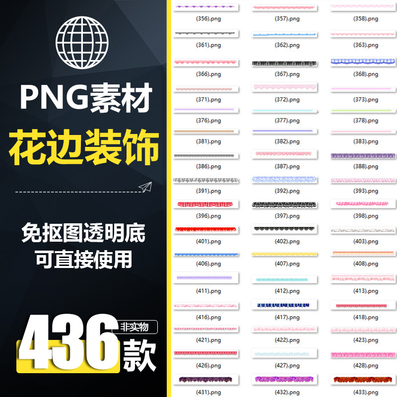 FWD429卡通蕾絲邊框花邊分割線PNG免摳透明圖片 美化照片裝飾素材