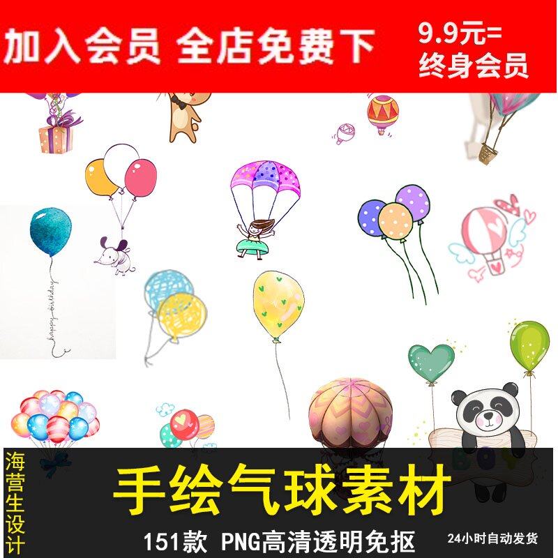 唯美手繪卡通可愛氣球熱氣球照片美化裝飾PS素材PNG透明免扣元素