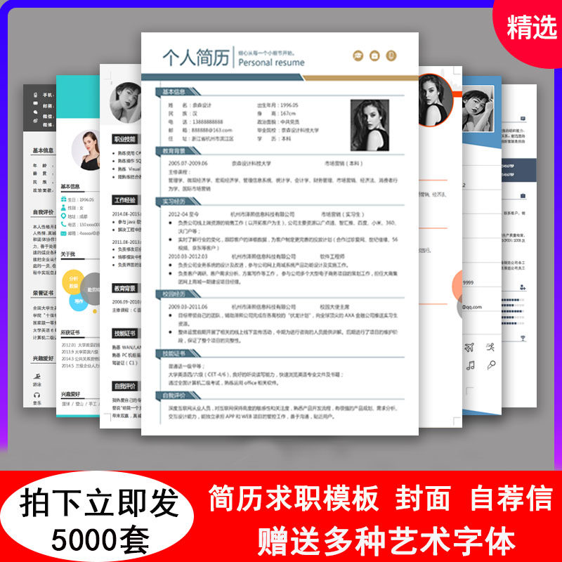 簡歷模板個人求職面試跳槽電子版word封面應屆畢業(yè)生表格英文設(shè)計