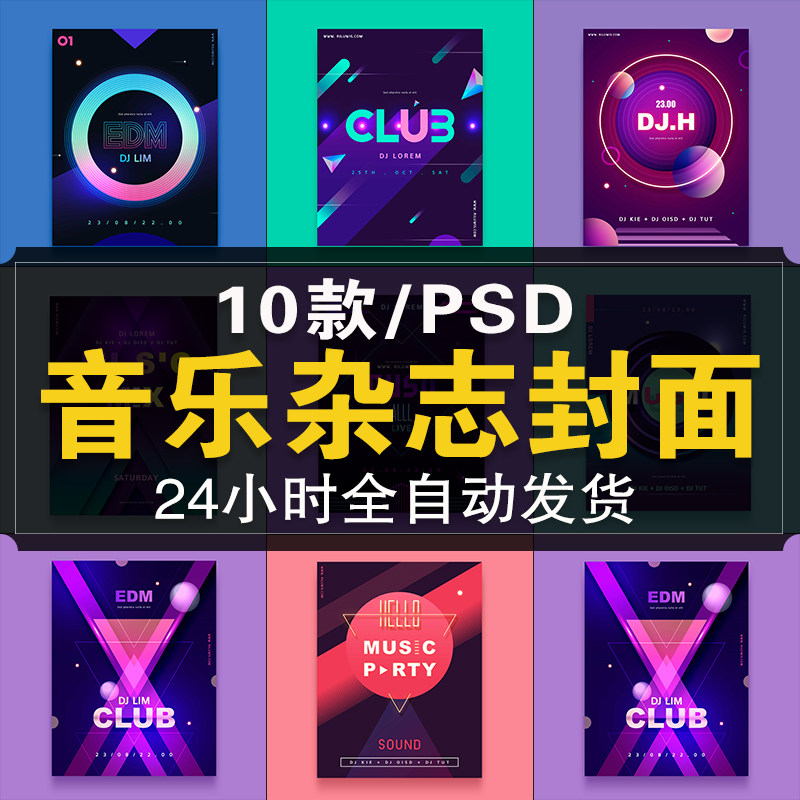 凌感設(shè)計精選時尚創(chuàng)意彩色漸變流行音樂雜志宣傳冊封面海報PS素材