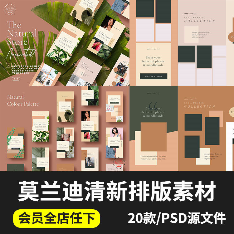 小清新莫蘭迪北歐風圖文照片沛手機海報封面設(shè)計PSD模板PS素材