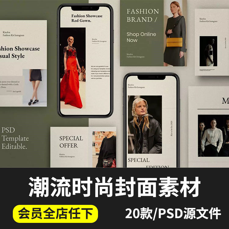 潮流時(shí)尚優(yōu)雅圖文沛照片服裝手機(jī)海報(bào)雜志封面PSD模板設(shè)計(jì)素材
