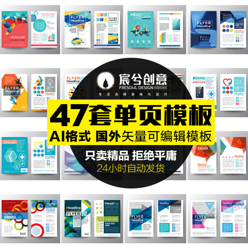 國外時(shí)尚單頁模板產(chǎn)品畫冊(cè)封面A4設(shè)計(jì)素材ai格式矢量幾何線條現(xiàn)代