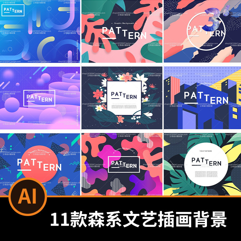 AI0833#森系文藝插畫海報(bào)小清新背景熱帶葉子封面設(shè)計(jì)AI矢量素材