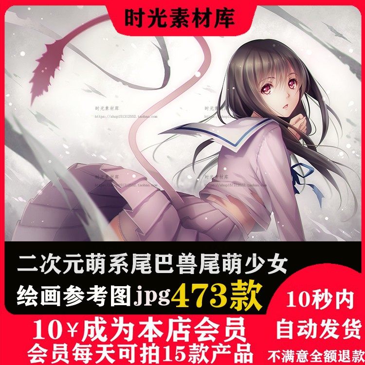 A816.動漫二次元萌系尾巴獸尾萌少女圖集原畫插畫CG線稿圖片素材