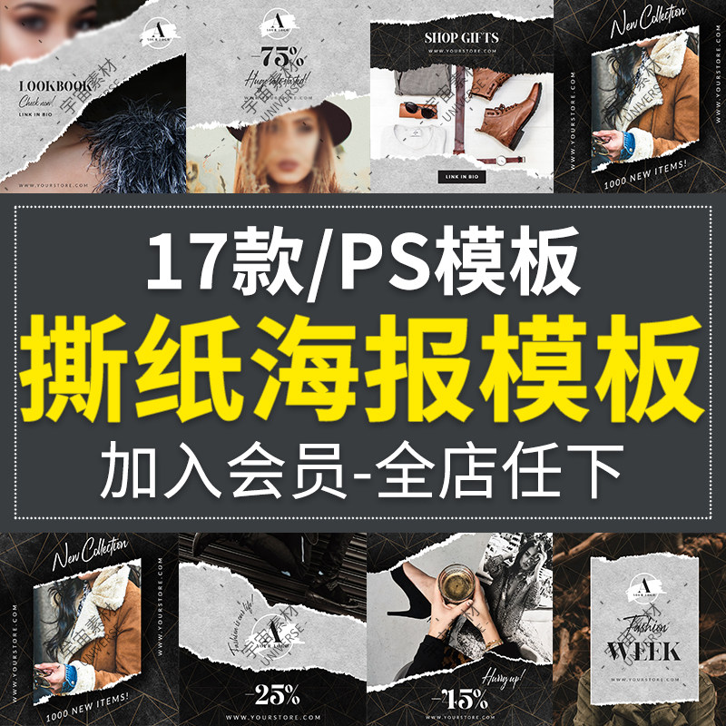 國外撕紙創(chuàng)意潮流品牌服飾促銷海報(bào)照片貼圖模板 PS設(shè)計(jì)素材