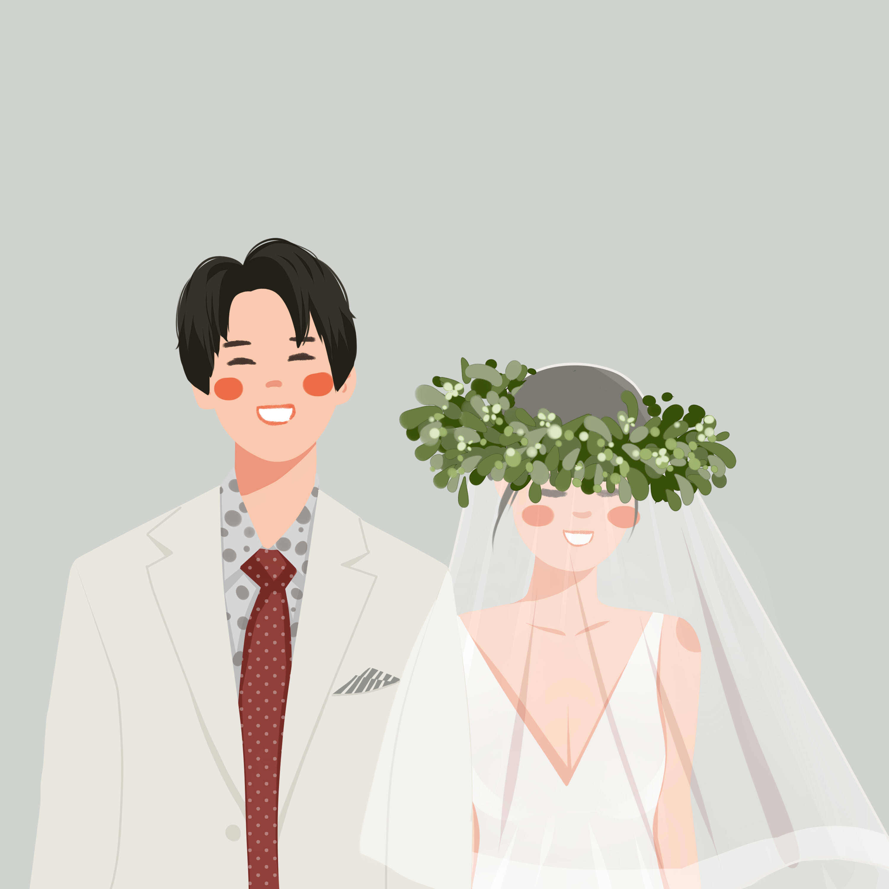 手繪婚紗頭像婚禮插畫請柬設計卡通漫畫情侶q版手繪結婚照片定制