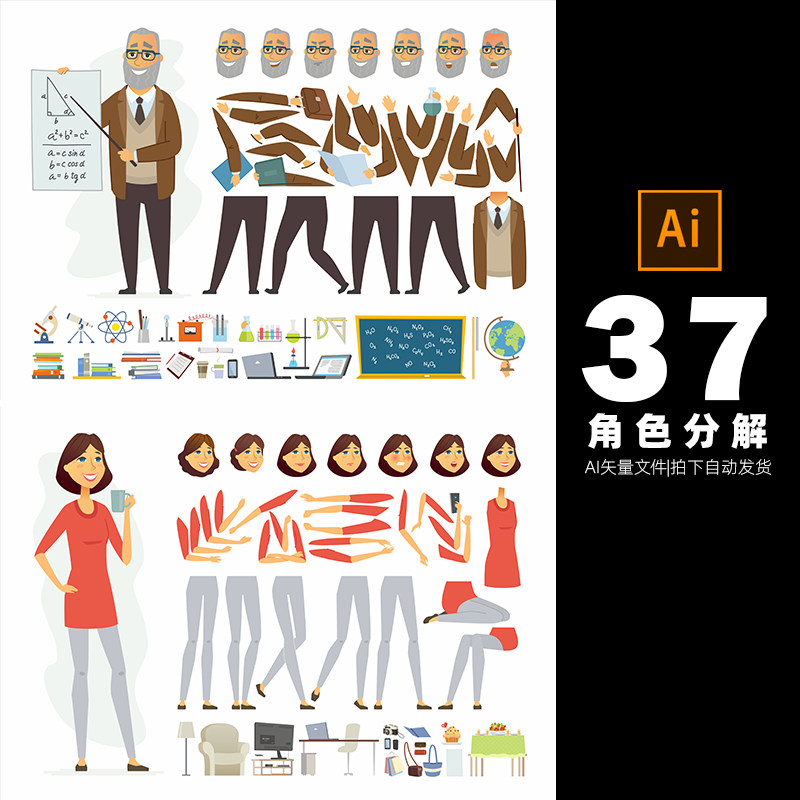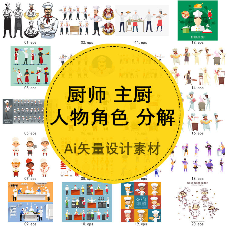 廚師 主廚 人物 角色 mg動畫 分解ai矢量圖形設計文件素材