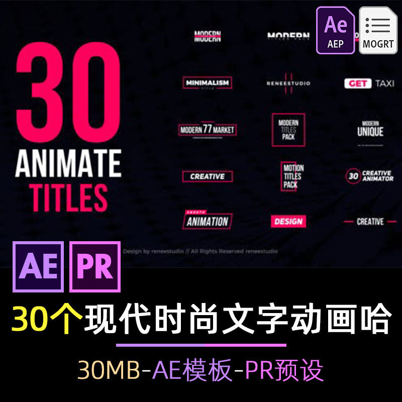 30個現(xiàn)代時尚文字標題沛設計動畫效果 AE模板 PR預設