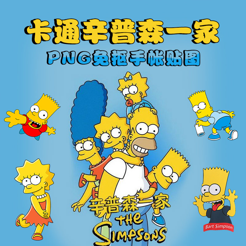 78張卡通辛普森一家動(dòng)畫(huà)片手帳貼圖DIY貼紙png免摳平面設(shè)計(jì)素材圖