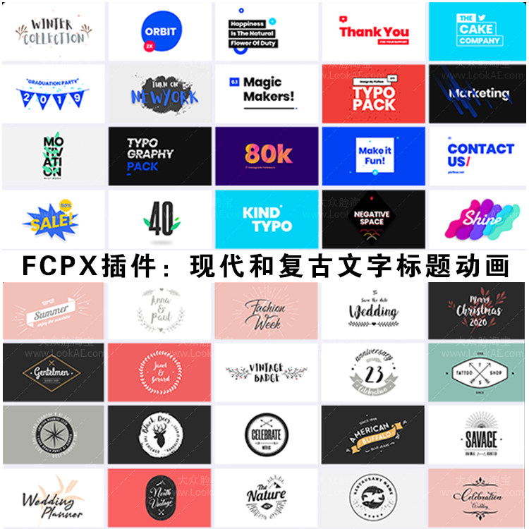 FCPX插件-101個(gè)現(xiàn)代流行復(fù)古懷舊創(chuàng)意文字標(biāo)題沛設(shè)計(jì)動(dòng)畫(huà)