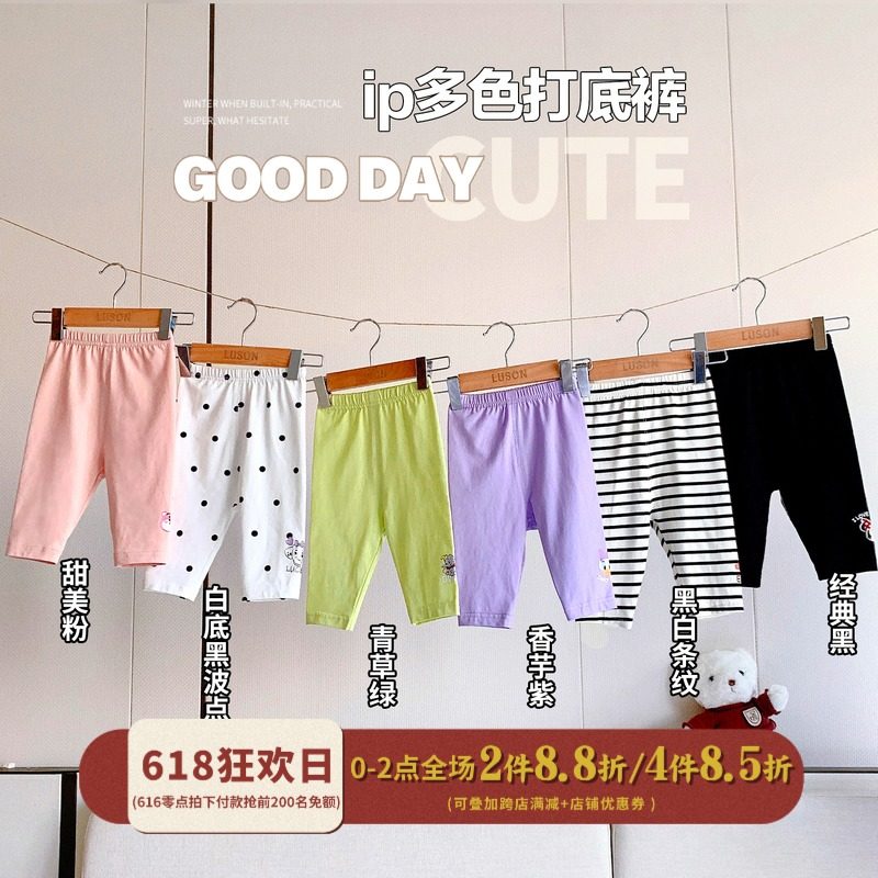 陳大豬L媽 女寶寶卡通打底褲百搭夏季嬰兒印花9分褲透氣小童褲子
