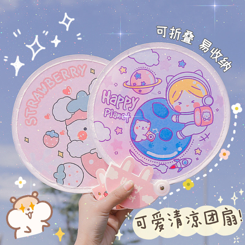 日式可愛折疊扇夏季卡通團扇少女心迷你布面口袋圓扇兒童隨身扇子