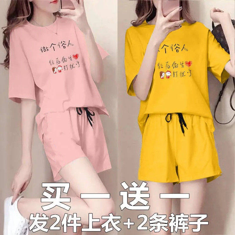 兩套價【買一送一】新款睡衣女夏短袖卡通休閑女士寬松家居服套裝