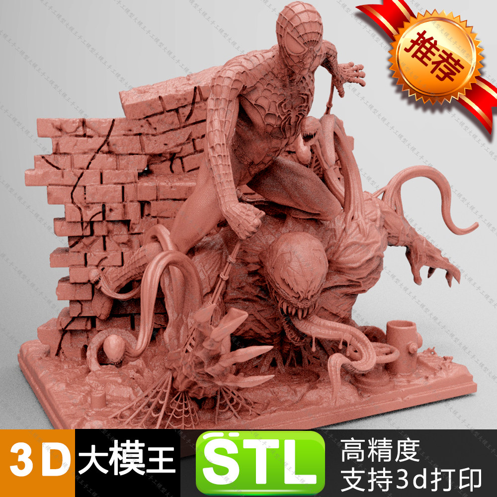 蜘蛛俠與毒液stl三維3d打印設(shè)計(jì)高精度源文件CG模型人物翻模手辦