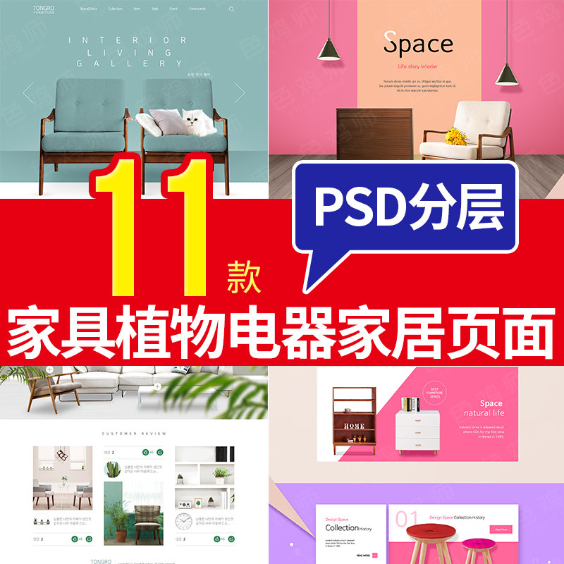 家具電器網(wǎng)頁 室內(nèi)植物背景電商家居 首頁界面 PSD分層設(shè)計素材