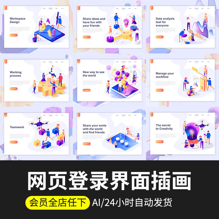 啟動登錄頁面藍紫色系網(wǎng)頁設計2.5D等距概念網(wǎng)站插畫模板矢量素材