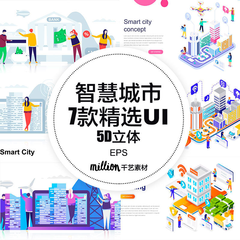 7款智慧城市精選三維立體2.5d界面ui設計矢量素材-網(wǎng)頁設計源文件