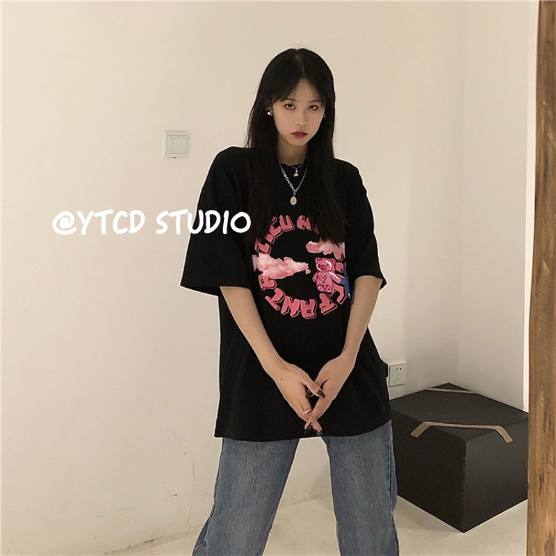 櫻田川島2021年夏季新款ins韓版小熊印花設(shè)計(jì)感小眾寬松短袖t恤女