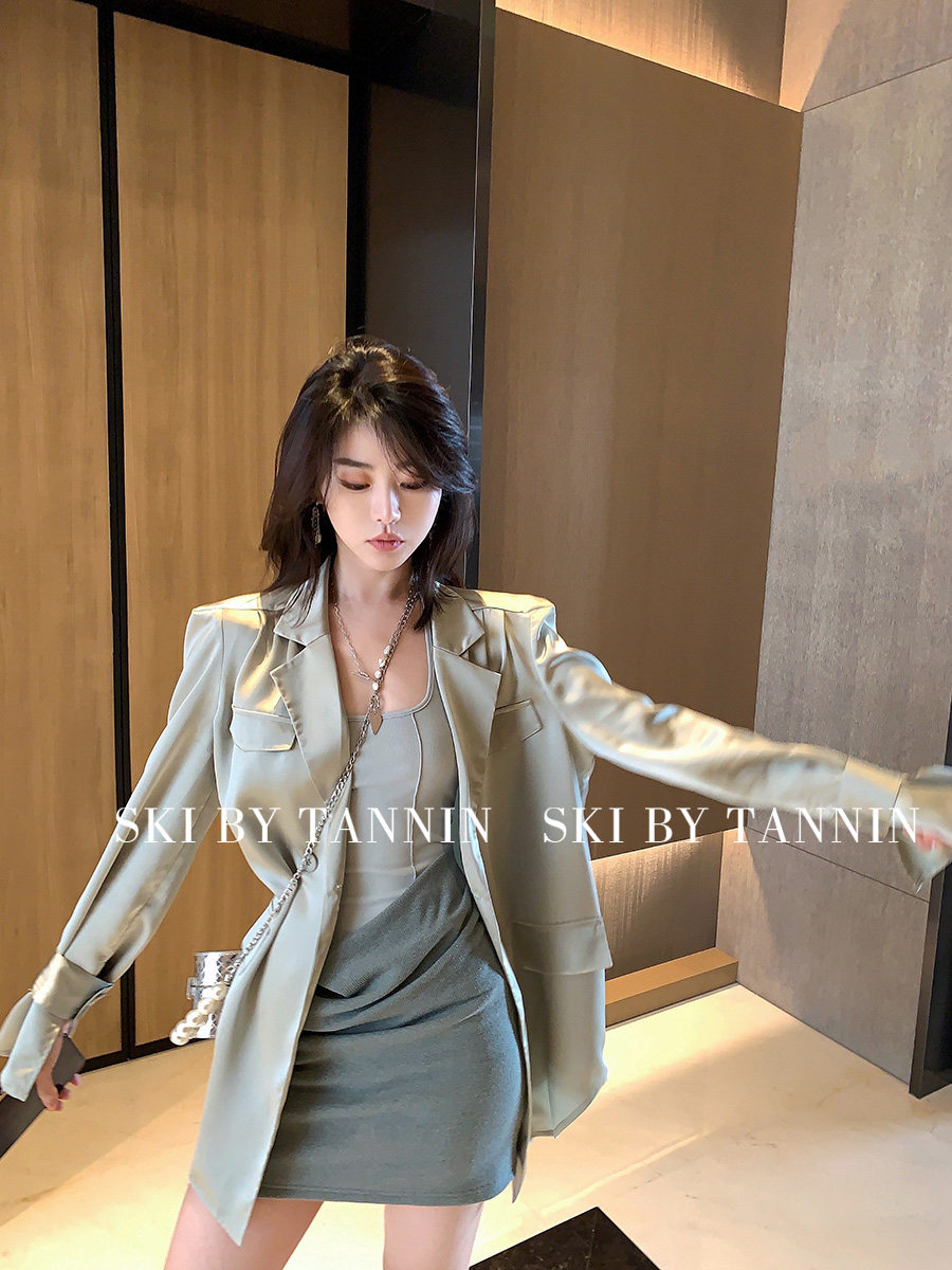 ski by Tannin緞面襯衫女夏設(shè)計感小眾寬松襯衣薄款西裝防曬外套