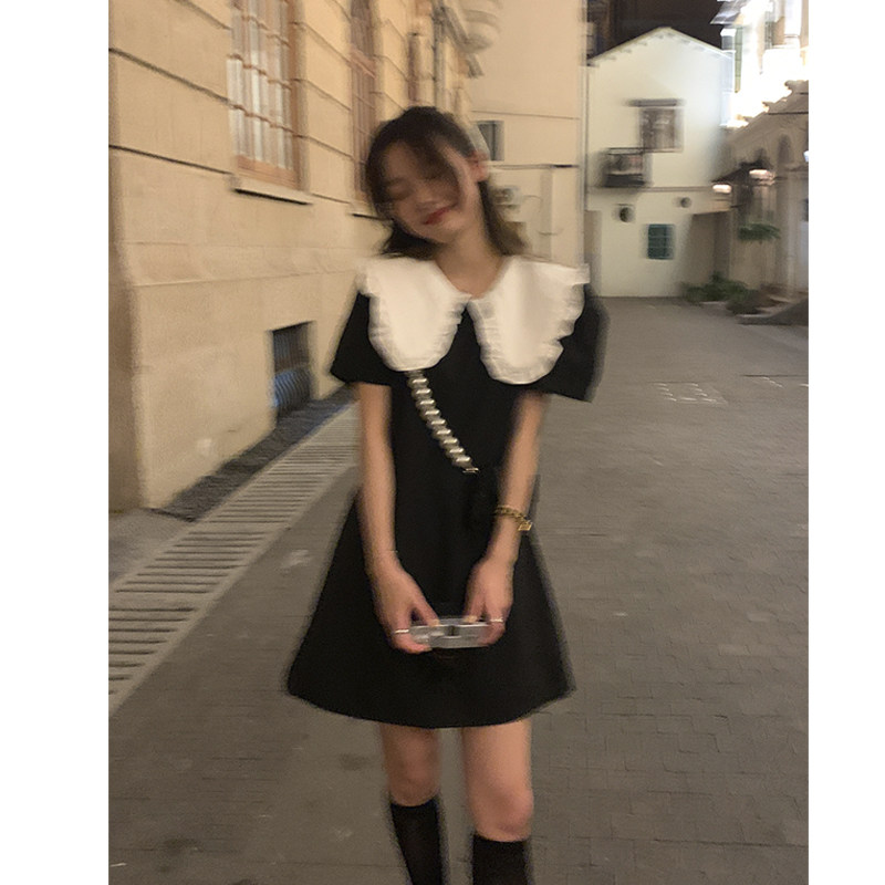 烏77設(shè)計感溫柔連衣裙女韓風(fēng)寬松娃娃領(lǐng)泡泡袖在逃公主裙2021夏季