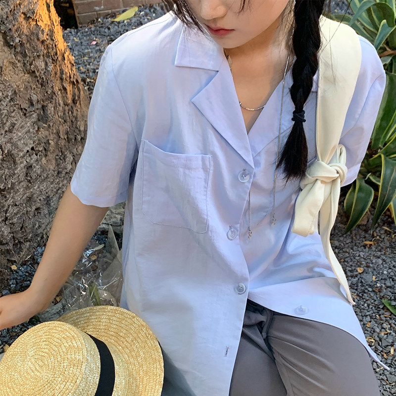 喂小金微胖mm純色短袖襯衫女2021夏新款寬松顯瘦簡約復(fù)古設(shè)計感