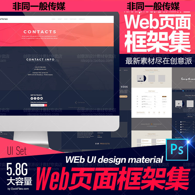 扁平化網(wǎng)站設(shè)計(jì)UI界面設(shè)計(jì)psd模板素材源文件 國(guó)外新頁面框架