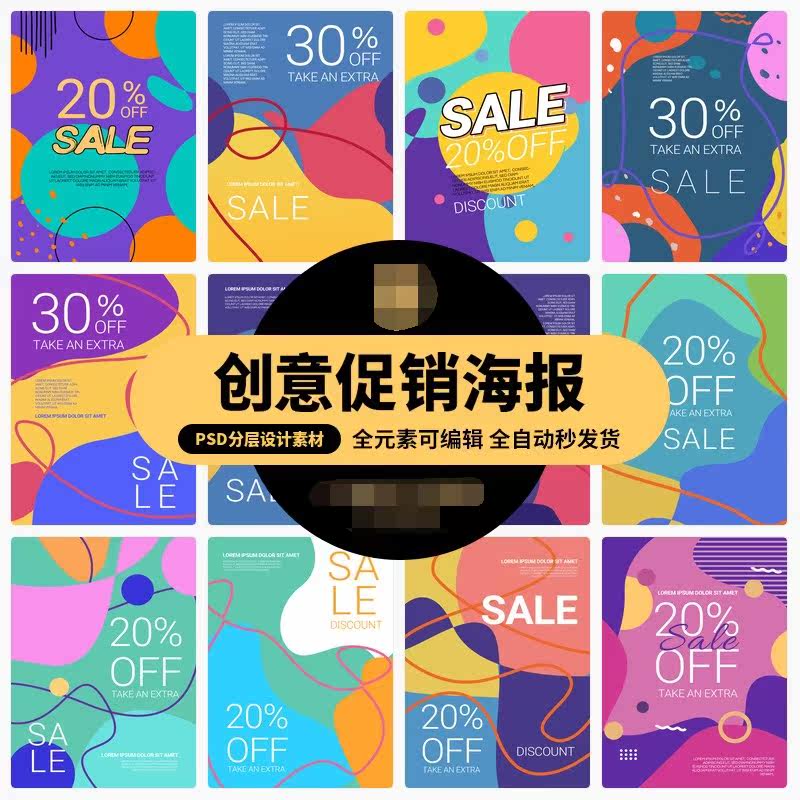 創(chuàng)意幾何不規(guī)則電商網(wǎng)站宣傳促銷折扣海報(bào)PSD分層設(shè)計(jì)素材模板
