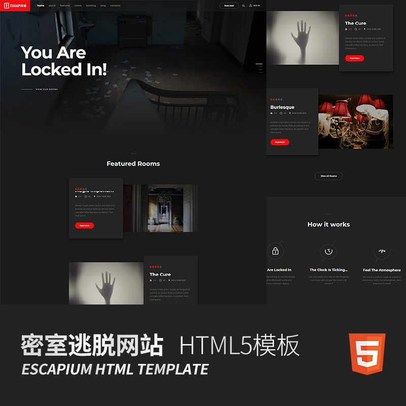 黑色密室逃脫網(wǎng)站HTML5模板逃生游戲官網(wǎng)HTML網(wǎng)頁(yè)設(shè)計(jì)Bootstrap4