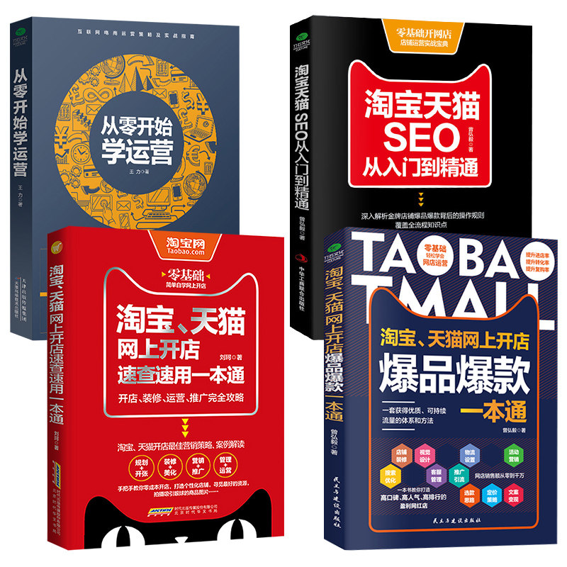 正版全4冊淘寶天貓網(wǎng)上開店裝修運(yùn)營推廣營銷電子商務(wù)電商運(yùn)營 書籍2020也要開網(wǎng)店如何開淘寶店直通車技巧從零開始學(xué)運(yùn)營書籍