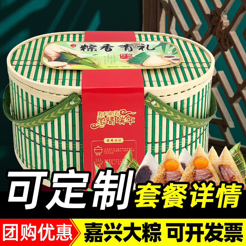 粽子竹籃禮盒裝嘉興肉粽蛋黃肉粽子蜜棗豆沙甜粽端午粽子團(tuán)購送禮