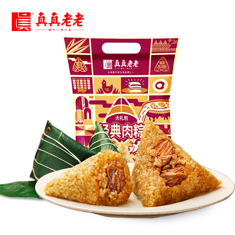 真真老老嘉興大肉粽子鮮肉經(jīng)典肉粽大禮包10只早餐團(tuán)購端午節(jié)送禮