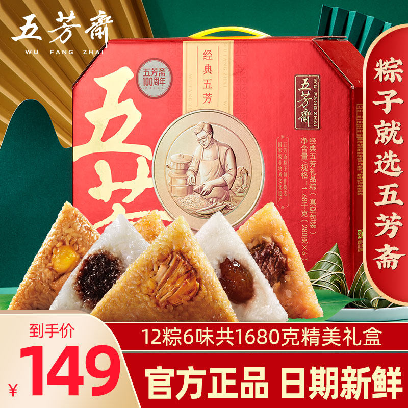 五芳齋經(jīng)典粽子禮盒裝蛋黃大肉栗子豆沙紅燒牛肉嘉興特產(chǎn)端午團(tuán)購