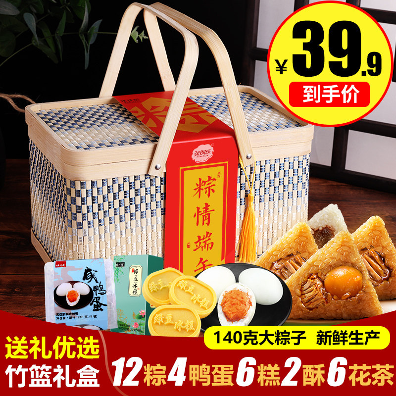 端午節(jié)粽子禮盒蛋黃鮮肉粽豆沙蜜棗粽送禮禮品竹籃禮盒裝團(tuán)購批發(fā)
