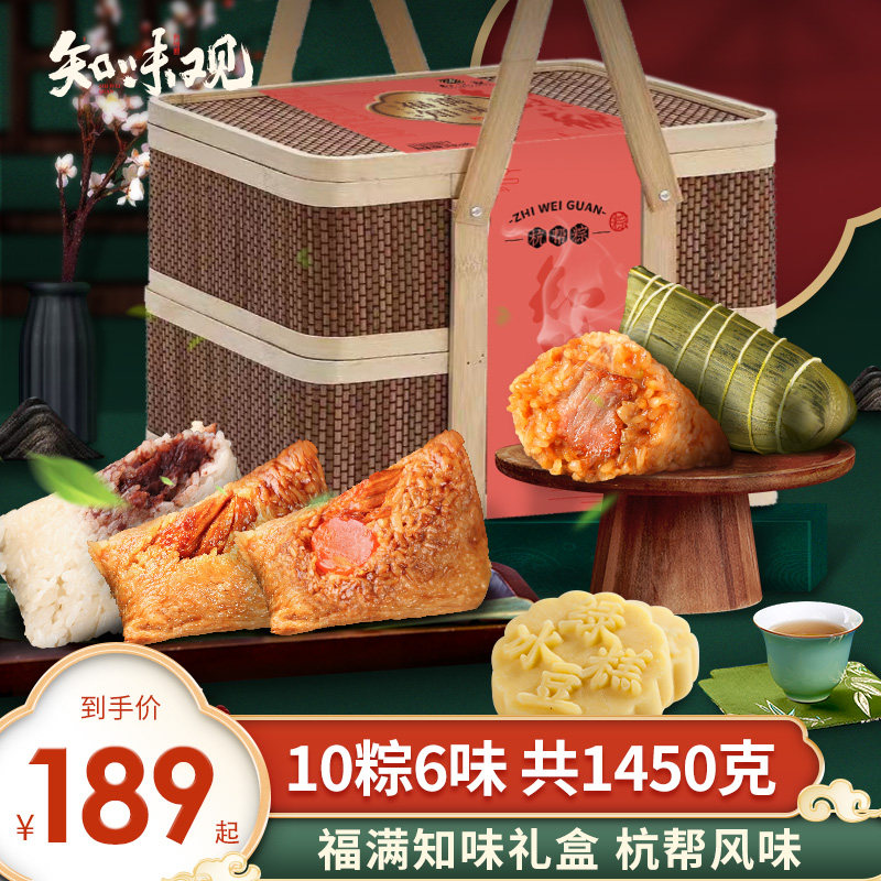 知味觀福滿知味端午竹籃粽子禮盒裝手工肉粽甜粽咸鴨蛋嘉興味團購