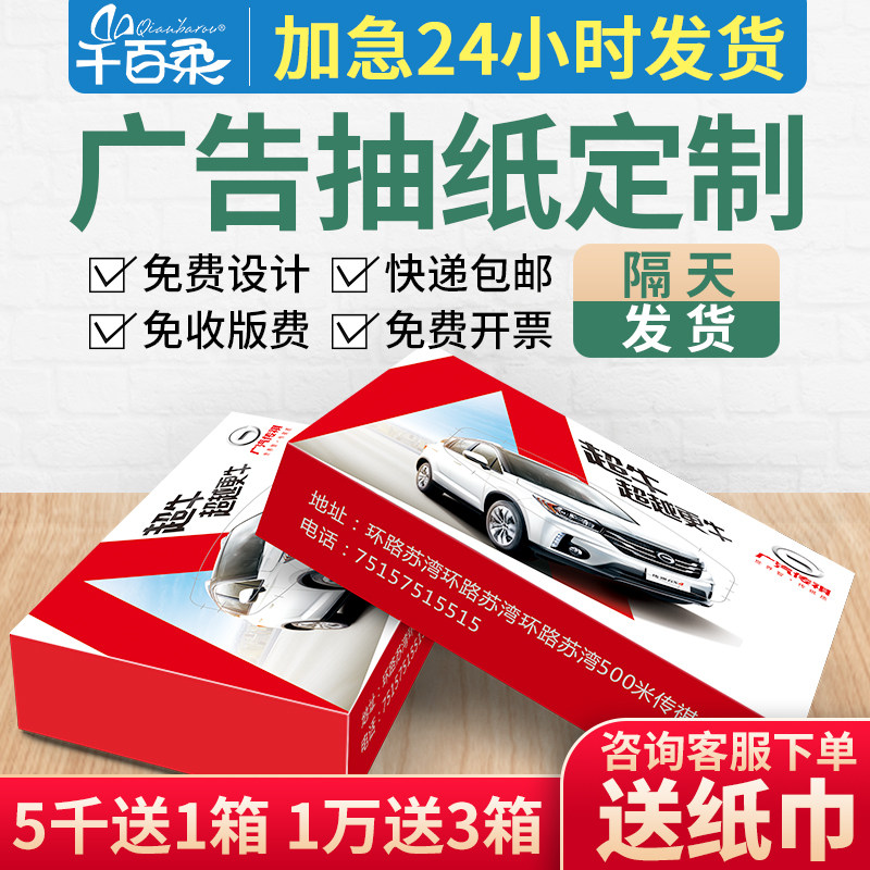 紙巾定制可印logo盒裝抽紙ktv酒吧餐廳燒烤訂做商用廣告宣傳紙巾