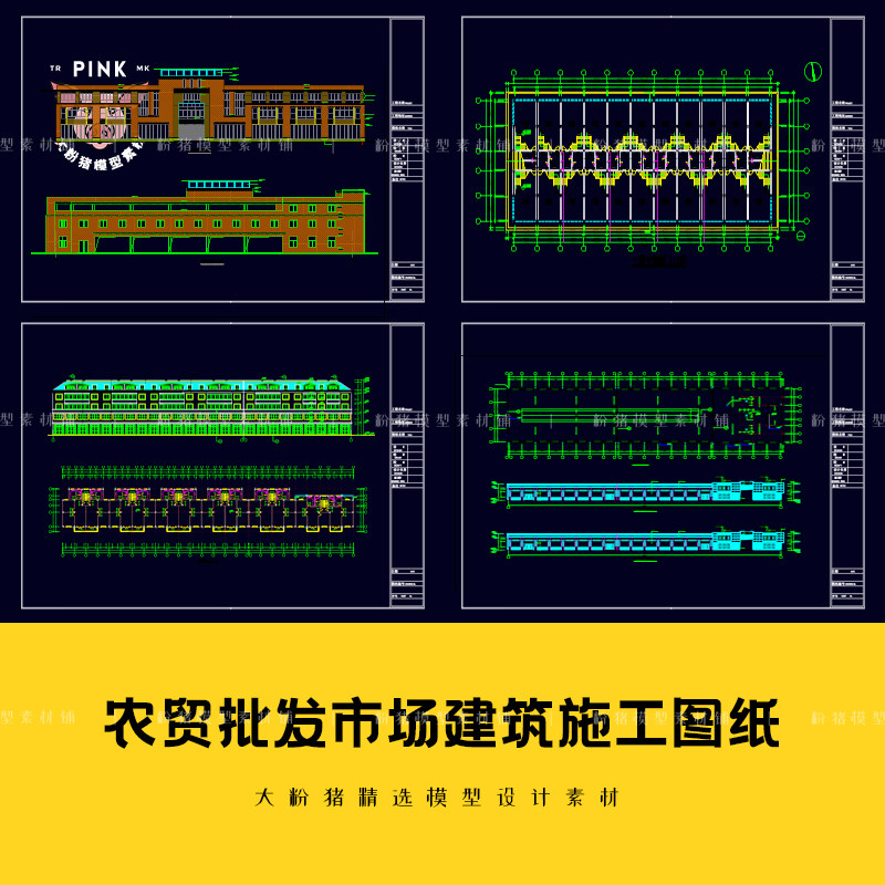 農(nóng)貿(mào)菜市場綜合批發(fā)市場超市平立剖面方案建筑設(shè)計CAD施工圖素材