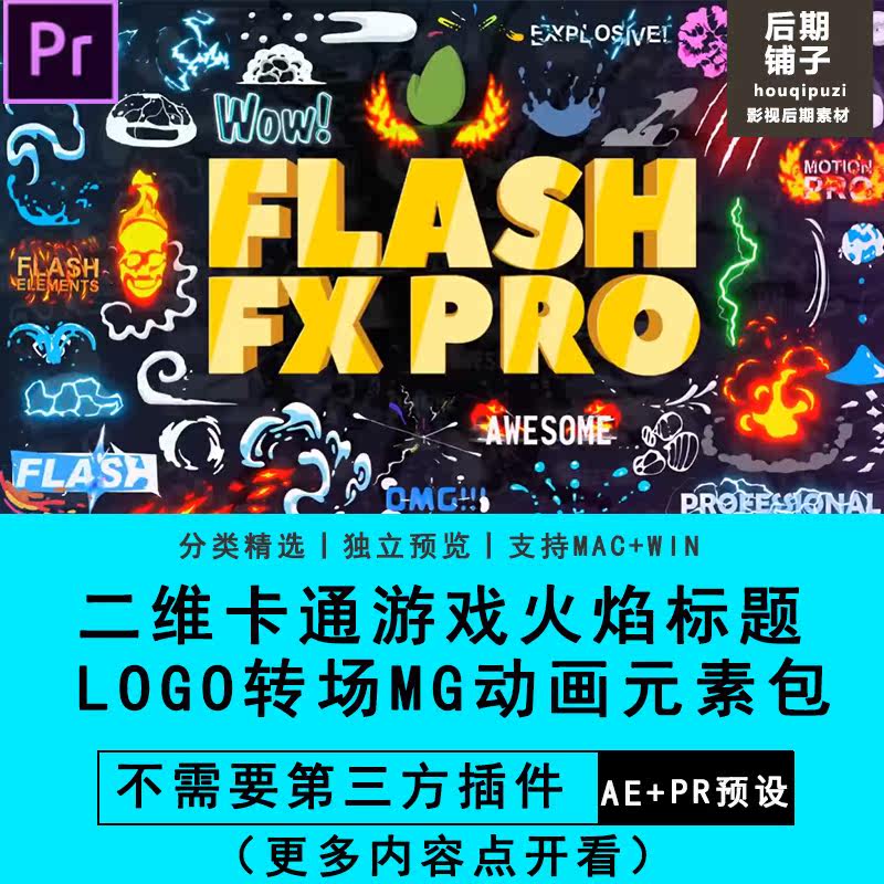 PR插件腳本預設卡通游戲動漫火焰能量文字標題LOGO轉場MG動畫模板