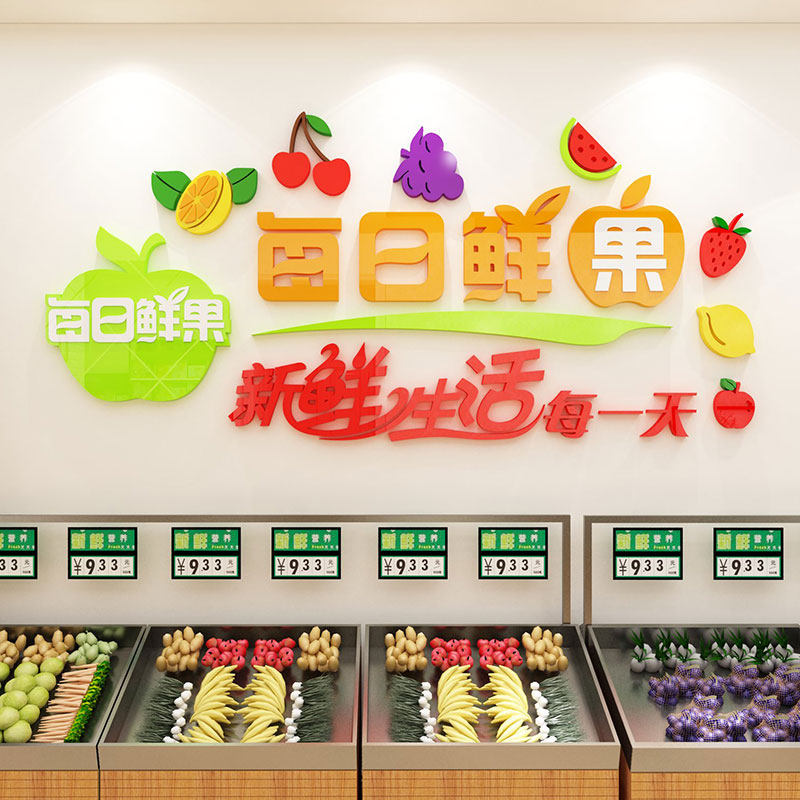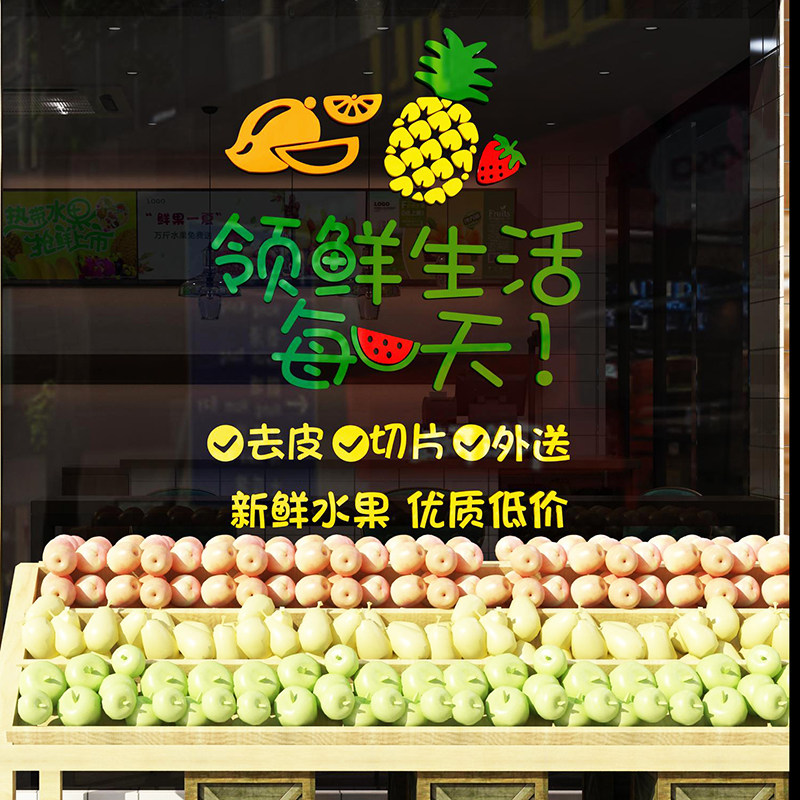 網(wǎng)紅水果店鋪裝修布置裝飾用品玻璃廣告貼紙海報(bào)圖案墻面背景自粘