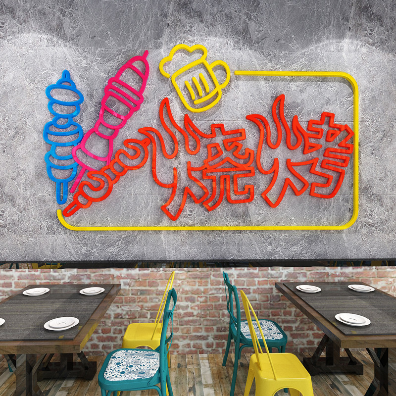 燒烤店墻面裝飾夜宵大排檔工業(yè)風(fēng)裝修布置酒吧飯店網(wǎng)紅文字3d立體