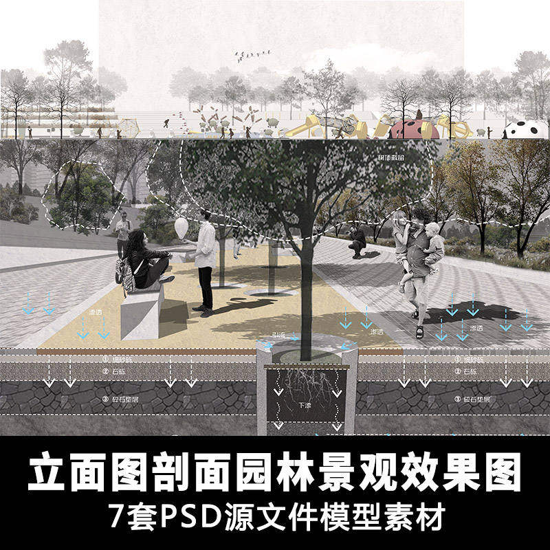 Y211景觀園林規(guī)劃設(shè)計(jì)ps立面圖剖面圖psd效果圖展示素材圖片新