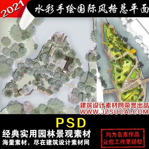 境外規(guī)劃總評PSD/園林景觀國際競賽風(fēng)格公園綠地PS彩色總平面圖
