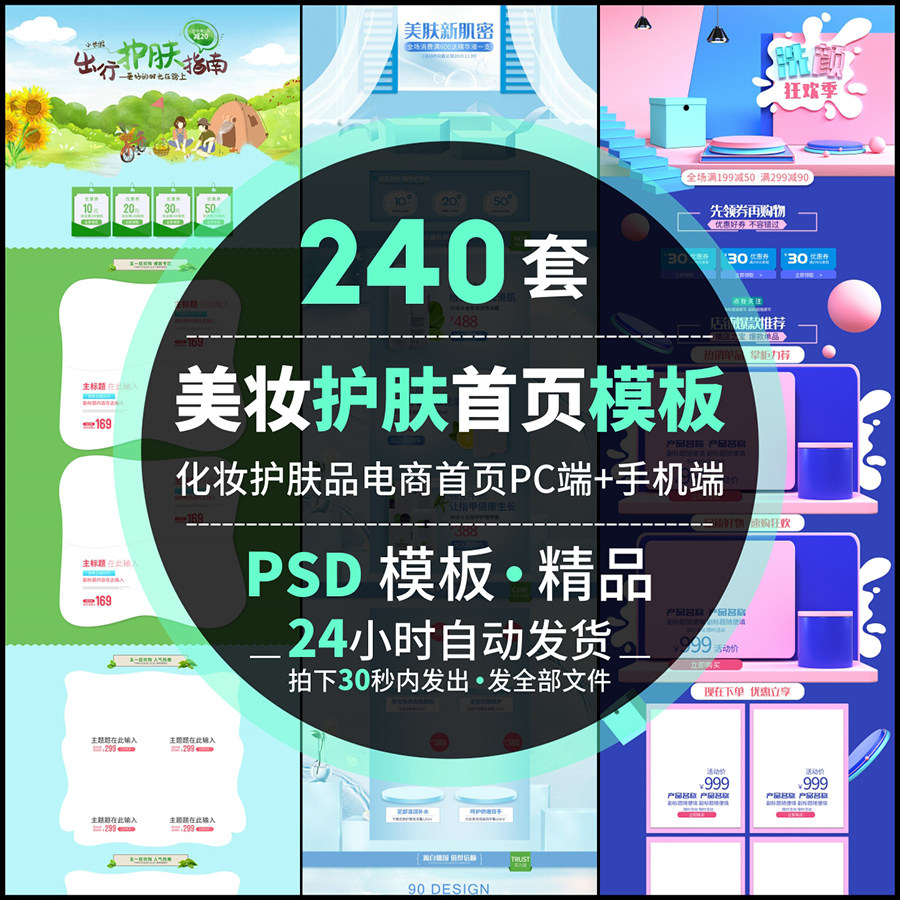 美妝護膚化妝品淘寶天貓電商手機端首頁模板店鋪裝修psd設(shè)計素材