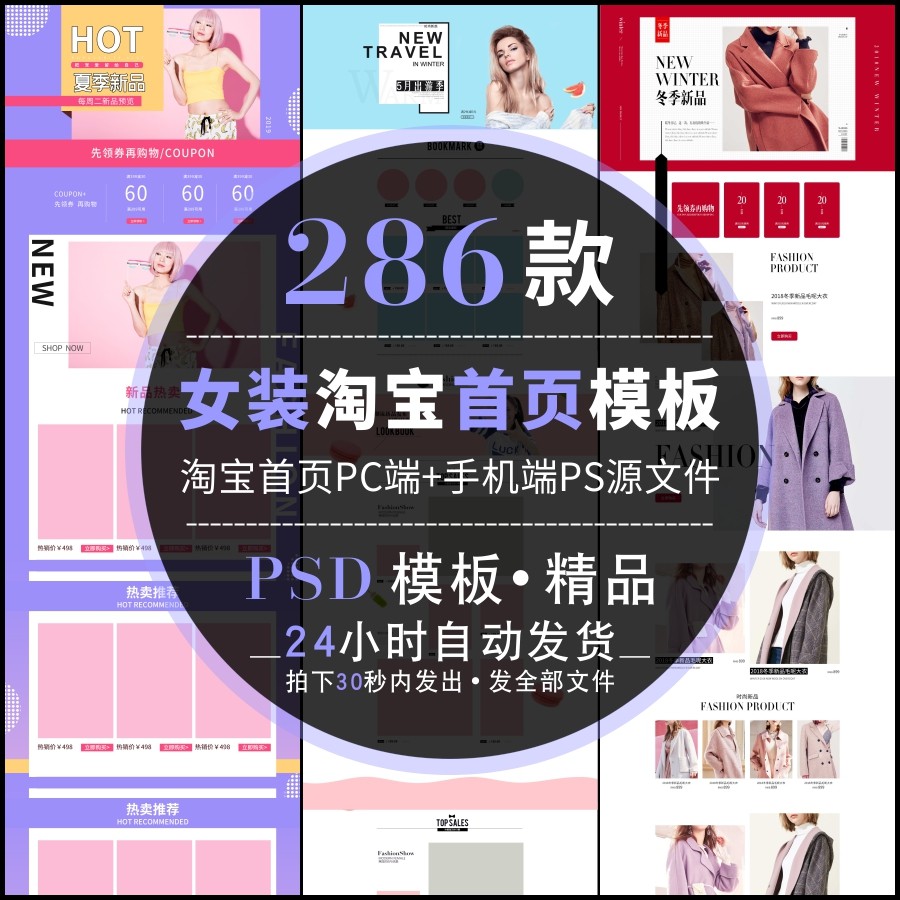 女裝淘寶天貓電商店鋪首頁模板手機PC端首頁裝修psd設(shè)計素材模版