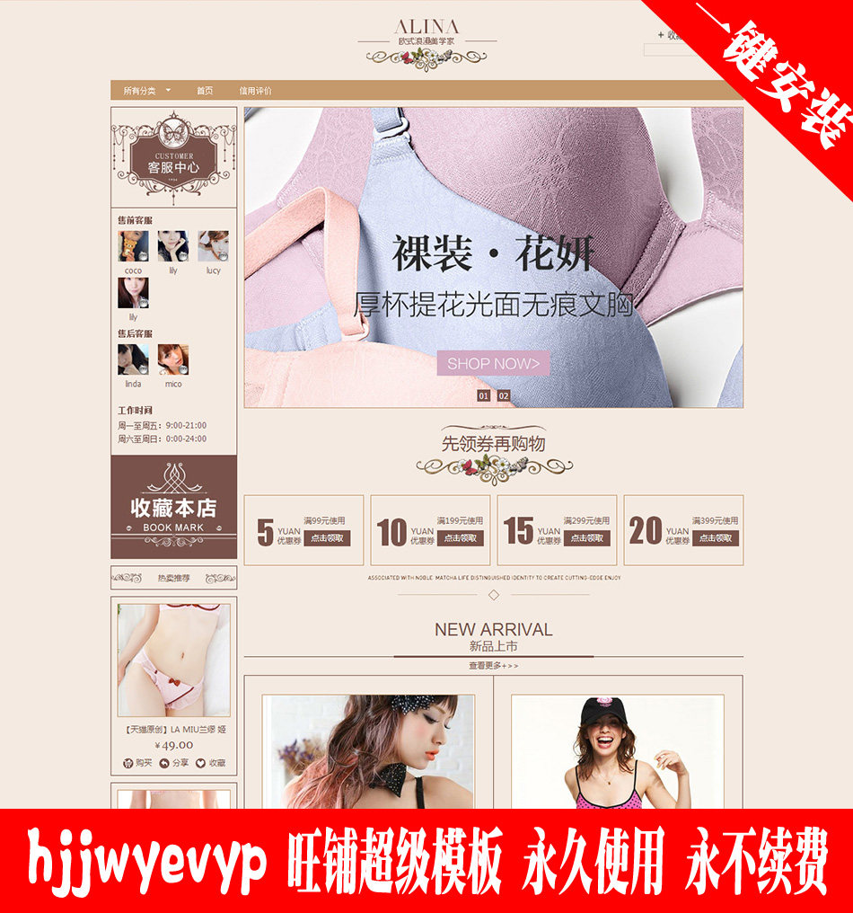 設(shè)計淘寶網(wǎng)店鋪裝修模板 基礎(chǔ)版女性內(nèi)衣內(nèi)褲睡衣文胸罩 終身使用