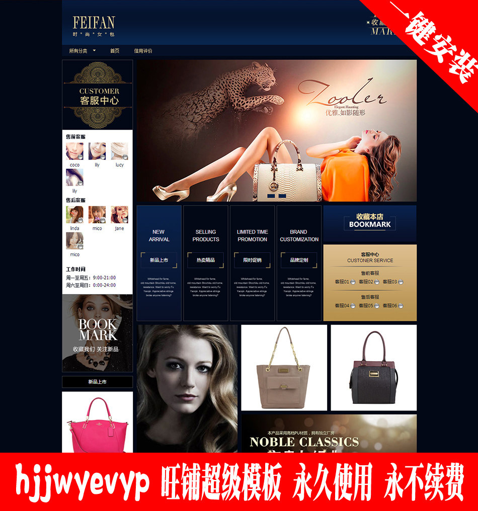 設(shè)計淘寶網(wǎng)店鋪裝修模板 基礎(chǔ)版高檔女包皮包手提包背包 代裝修