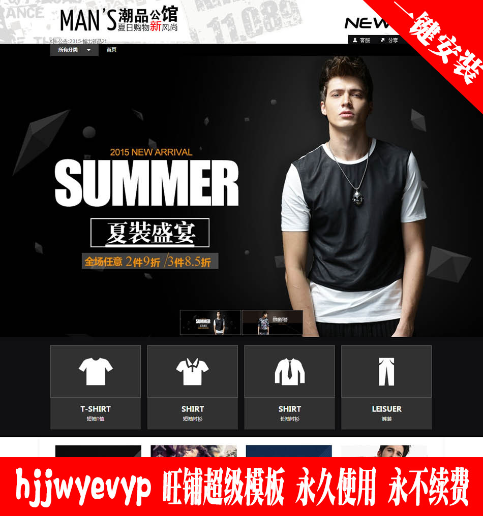 淘寶網(wǎng)頁版店鋪裝修模板首頁面設(shè)計專業(yè)智能版時尚男裝t恤衣褲鞋